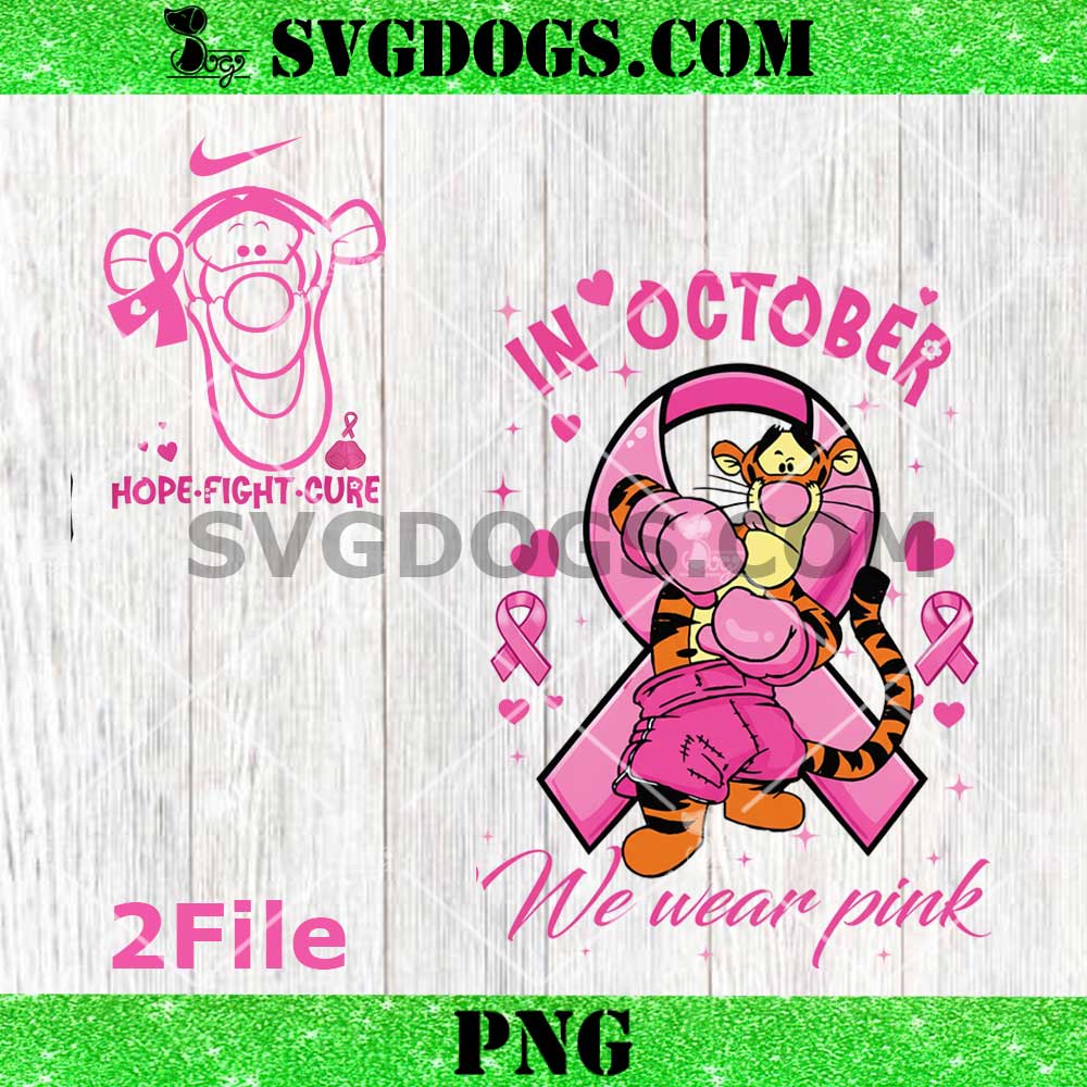 Product Tags#In October We Wear Pink Winnie the Pooh PNG, Breat Cancer Tigger PNG